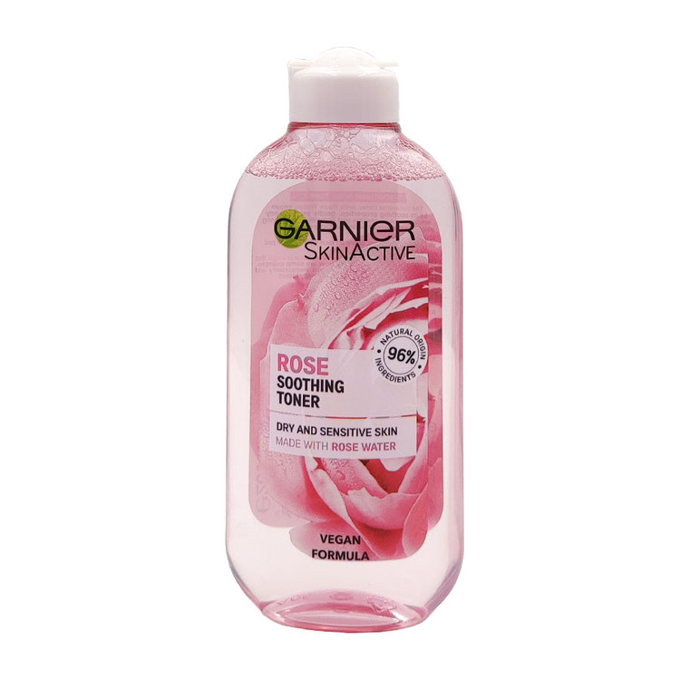 تونر گل سرخ گارنیر 96% از مواد طبیعی تشکیل شده است و ارگانیک است. تونر گارنیر با عصاره گل سرخ به آرامی و بدون هیچ آسیب پوستی و بدون خشکی پوست، آرایش و و آلودگی را پاک میکند. این محصول یک مکمل ارایشی است که از رطوبت رسانی بالایی برای پوست برخوردار است. این تونر باقیمانده اثرات مواد آرایشی و سلول های مرده را از روی سطح پوست پاک میکند و باعث شادابی و طراوت پوست میشود و چربی اضافی پوست را از بین میبرد.